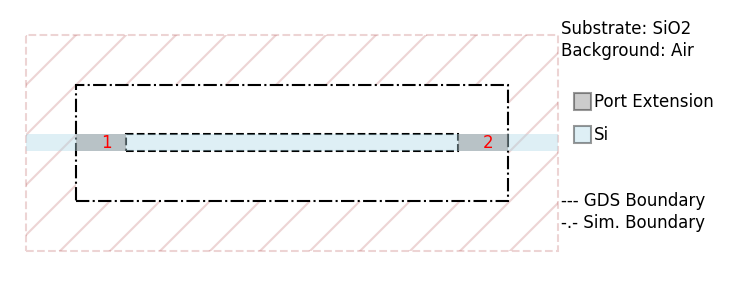 This example demonstrates the essential steps to simulate a straight silicon waveguide and extract S-parameters.